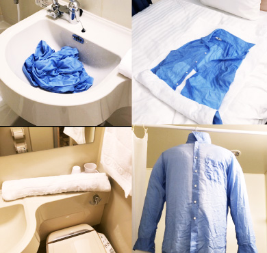 少しでも衣類を減らそうと、ホテルで洗濯しても
