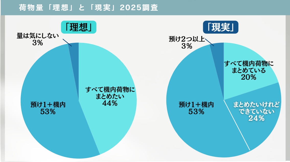 グラフを見ると理想の「44%」の人は、荷物をすべて機内荷物にまとめたいと思っています。
