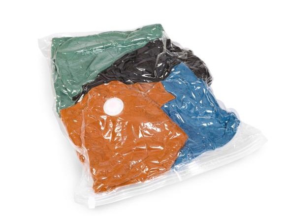 圧縮袋は、圧縮できるが重さは変わらない。シワの問題も。