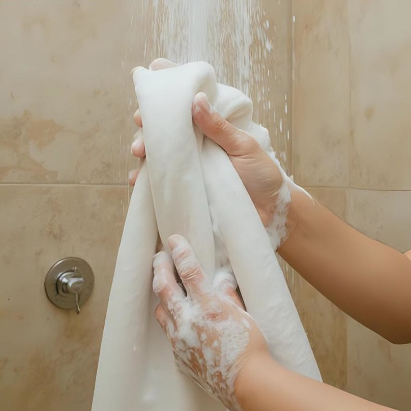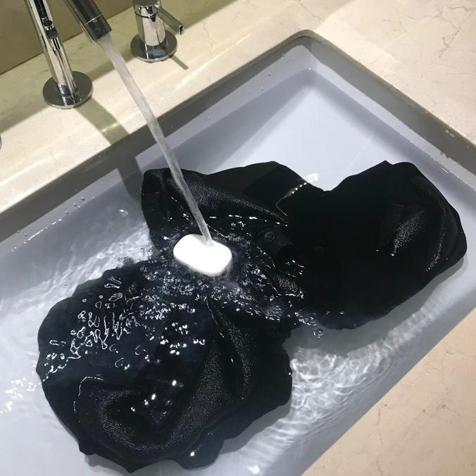 ボディソープとお湯で洗面台でもみ洗い。その後浸け置き。