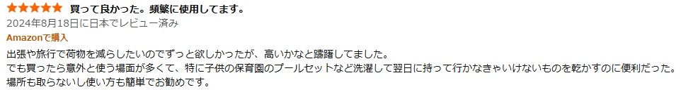 出張先では時間も設備も限られており、その限られた条件下で洗濯物が絶対に乾くか、という不安が大きなストレスになることを、身をもって実感していたからです。