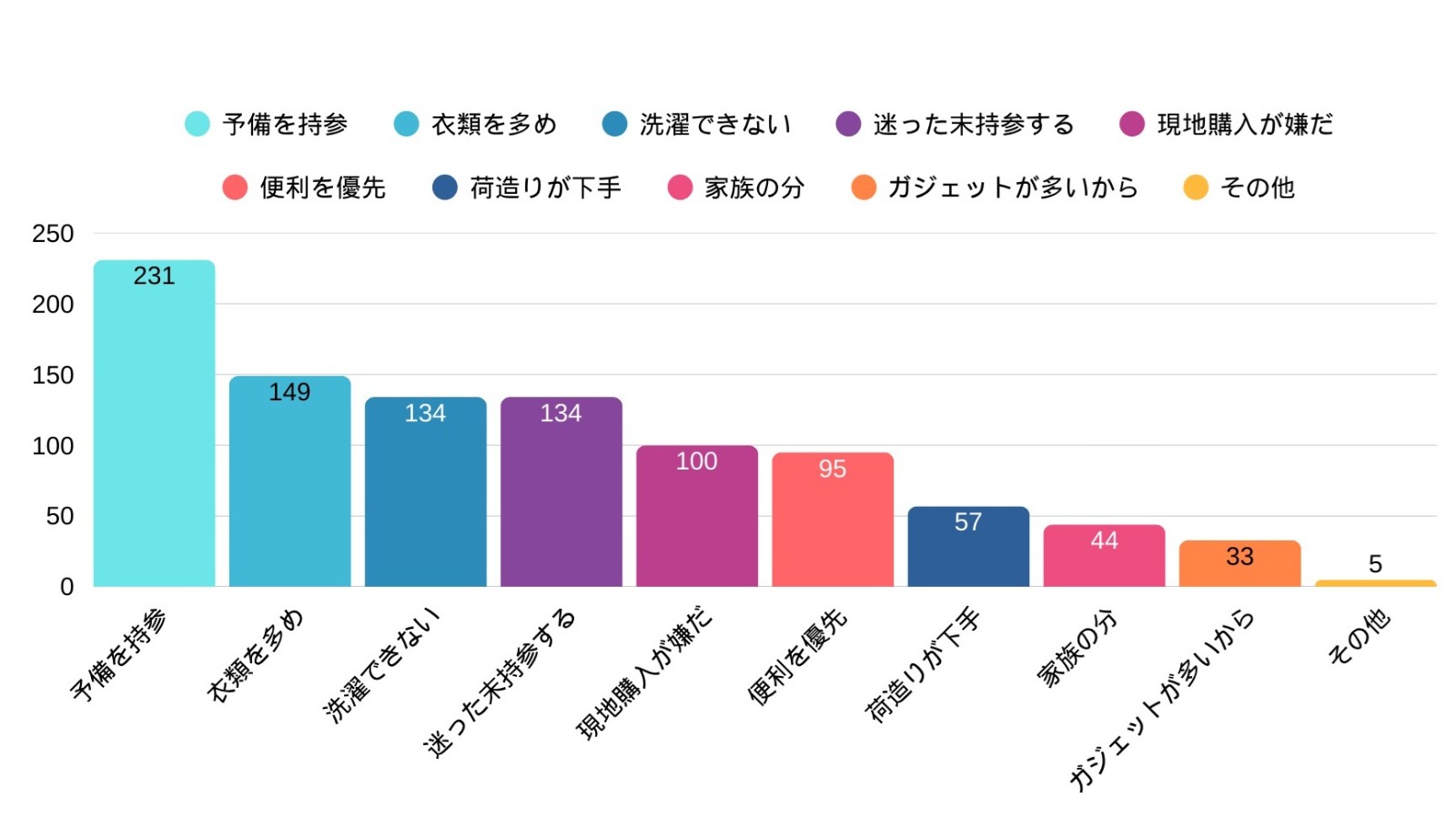 上記アンケートのように、荷物を減らせない理由の上位を衣類が占めています。