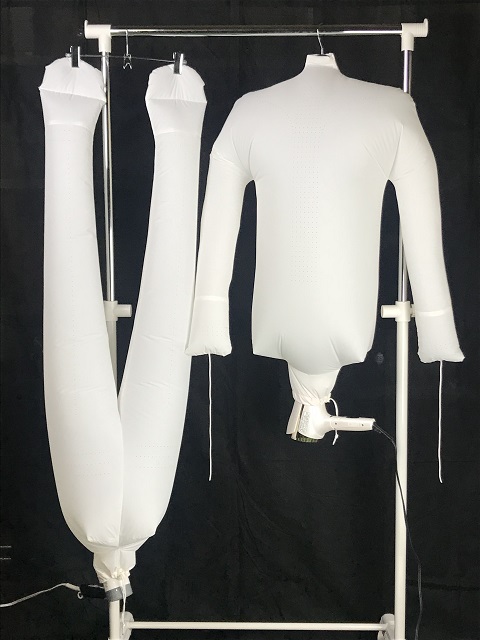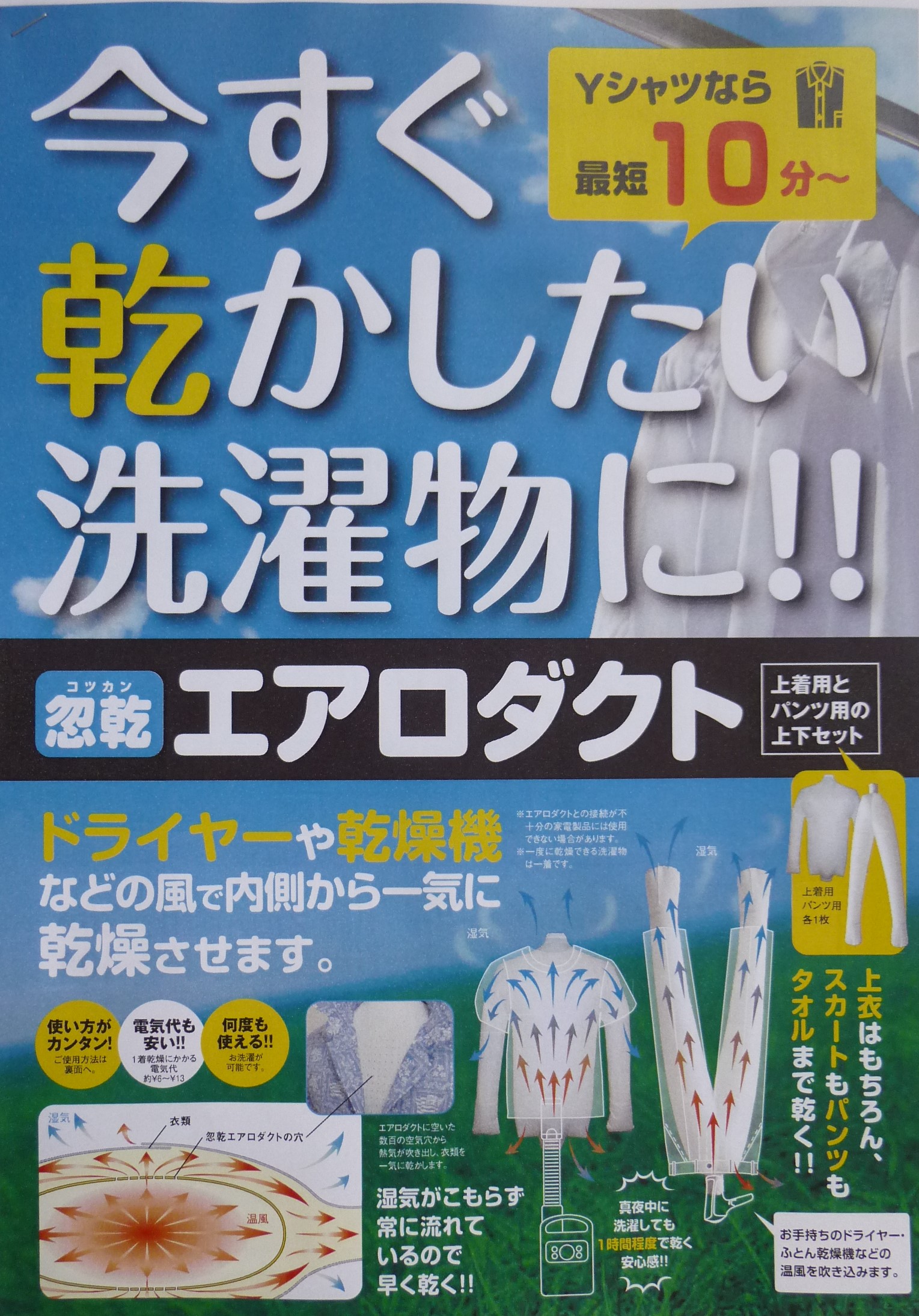 出張・旅行の着替えが軽減できる。荷物が減る。身軽になる。時間と費用と手間の軽減。さらにCO2削減にも貢献できる。携帯用衣類乾燥バルーン。家庭での急な洗濯乾燥の緊急事態にも。「忽乾(コツカン)エアロダクト」の上下セット