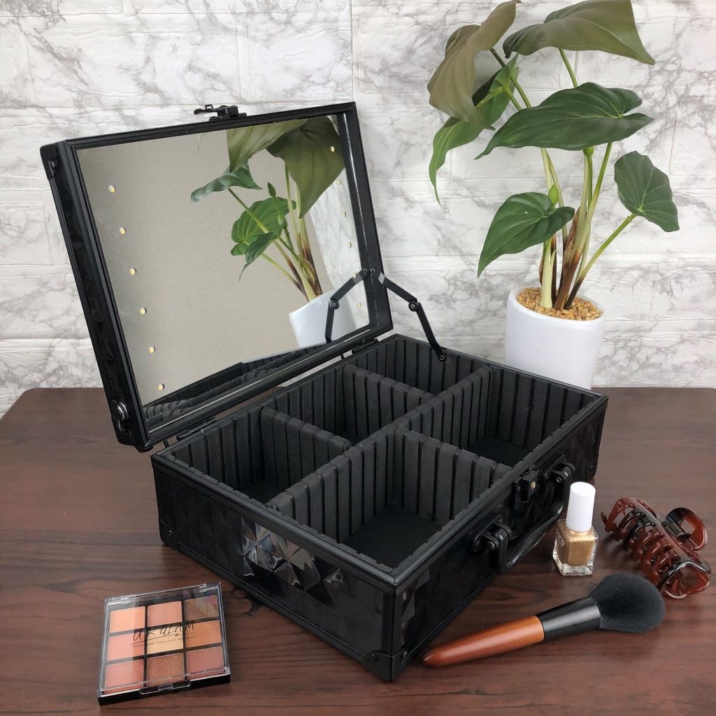 メイクボックス LED12個女優ミラー付き ブラックダイヤ 収納ボックス プロ用 コスメボックス 収納ケース