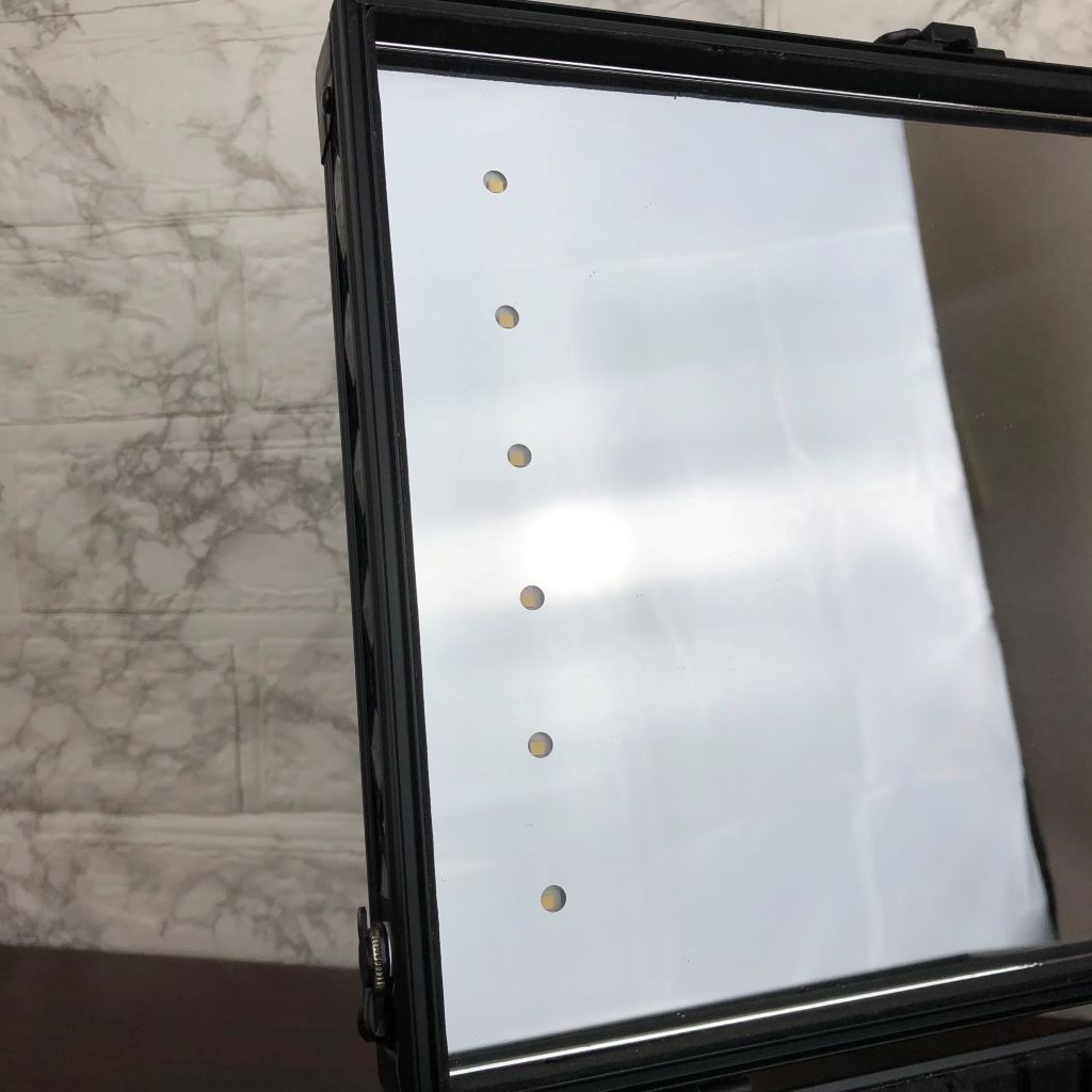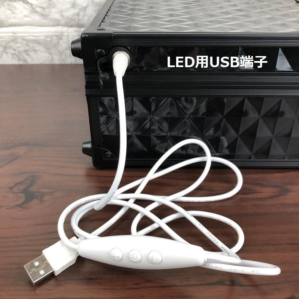 【LEDライト12個の女優ミラーを搭載】:メイク時のお肌に影ができにくいうれしい女優ミラー付です。明るさは専用USBコードで5段階で調整できます。5V 1AのUSB用ACアダプター、モバイルバッテリー、PCのUSB端子等に接続して使用します。(充電式ではありません)