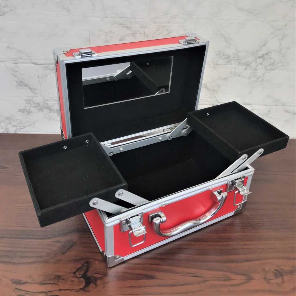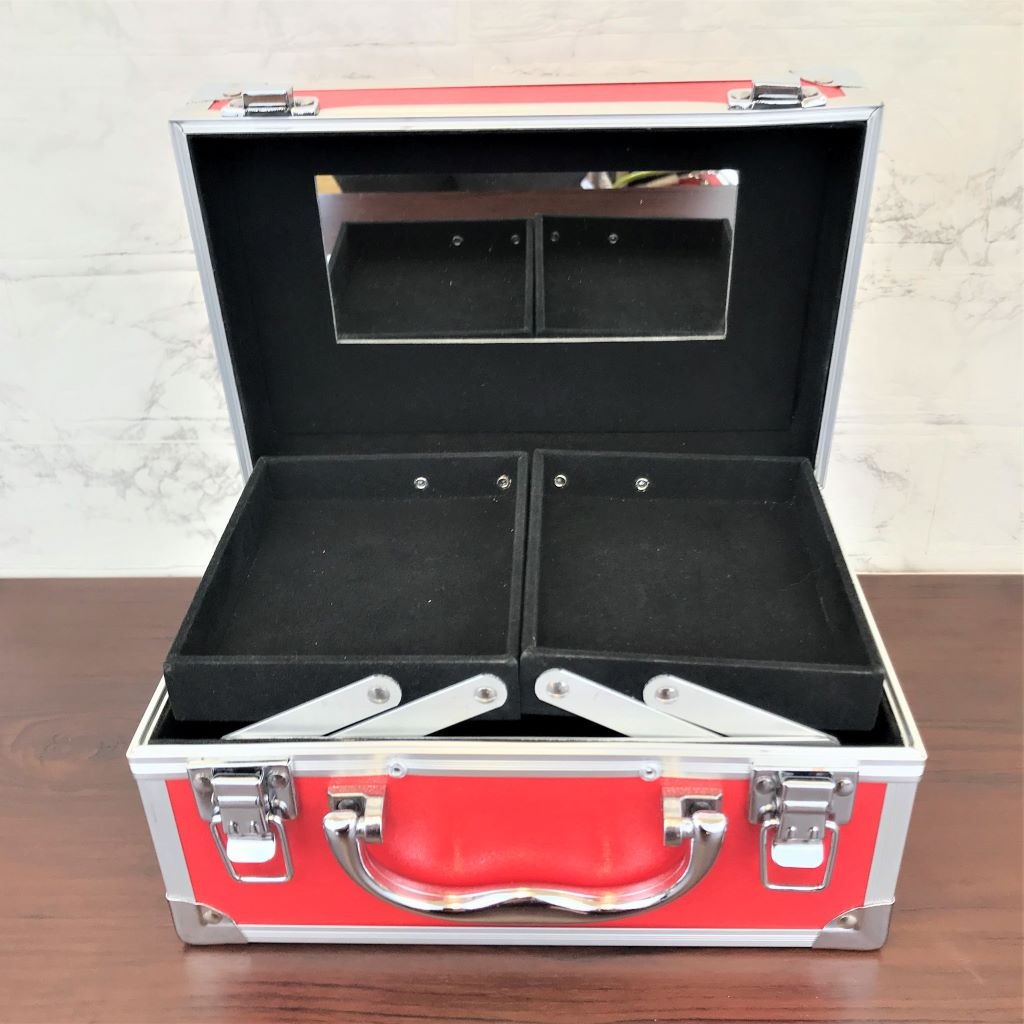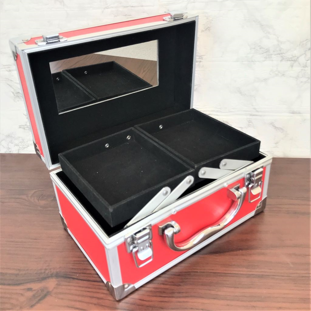 コスメケース 赤 トレイ・ミラー付