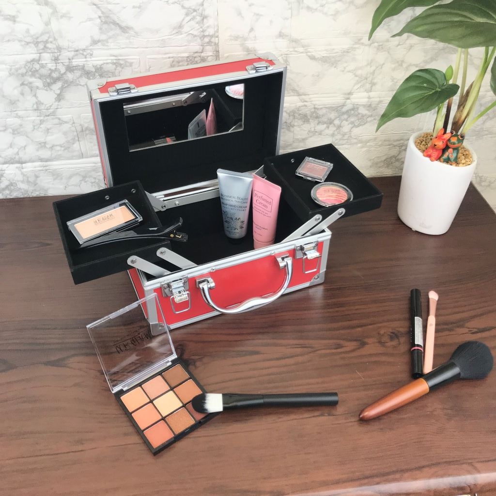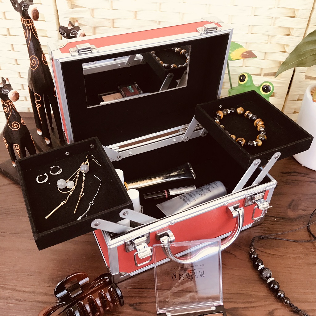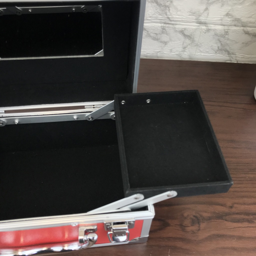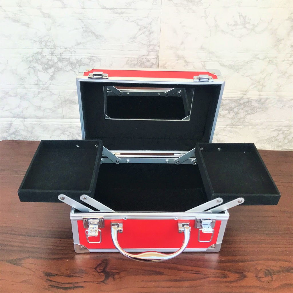 コスメケース 赤 トレイ・ミラー付
