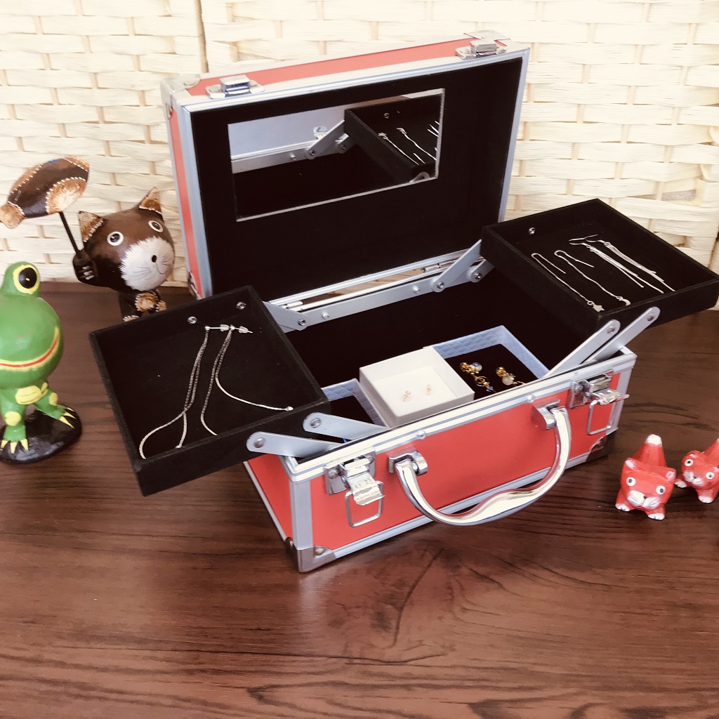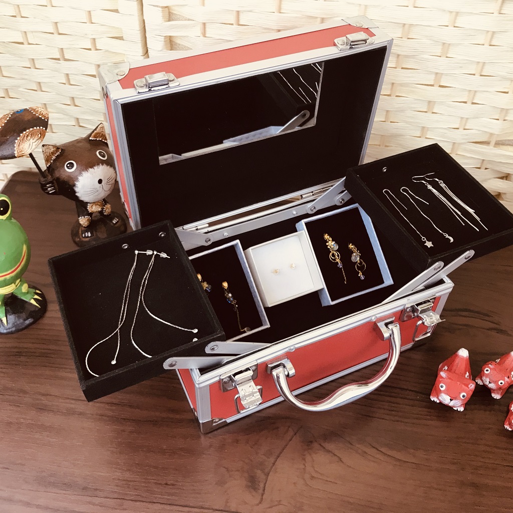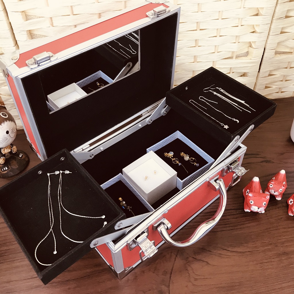2枚のトレイにはピアス等細かいアクセサリーやブレスレット等も収納でき、アクセサリーケースとしても使用できます。