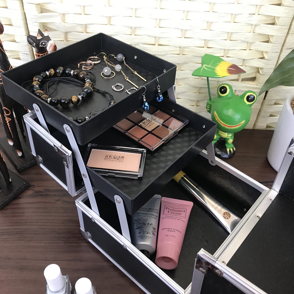 【シンプルで収納力抜群】:内部には展開式の2枚の大型トレイがついておりアクセサリーや、かさばるメイク道具をバッチリ収納できます。いつものコスメをまとめて整頓!プロ仕様のコスメケース。