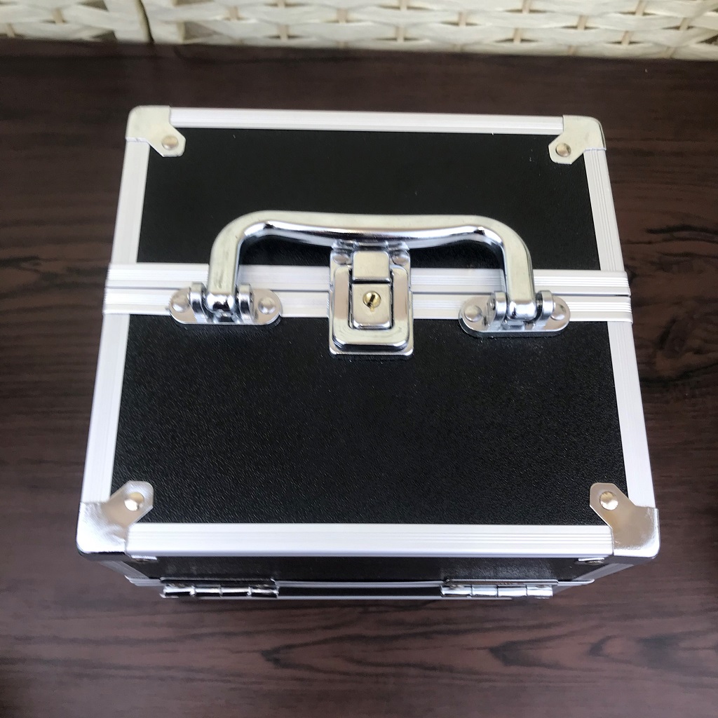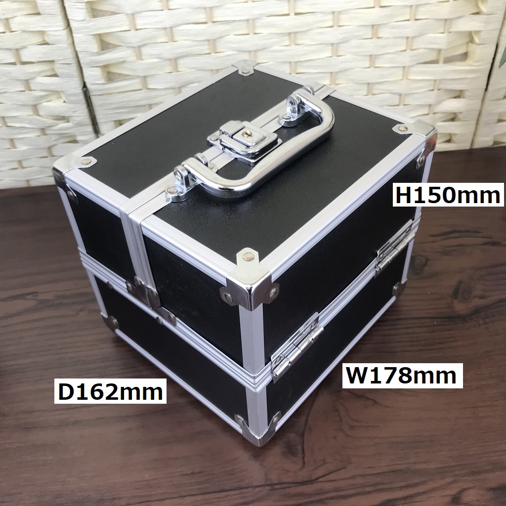 【仕様】外寸:幅230x奥行150x高150mm 重量:1.12KG 素材:表面PVC樹脂+アルミ合金フレーム 裏地:ベルベット
