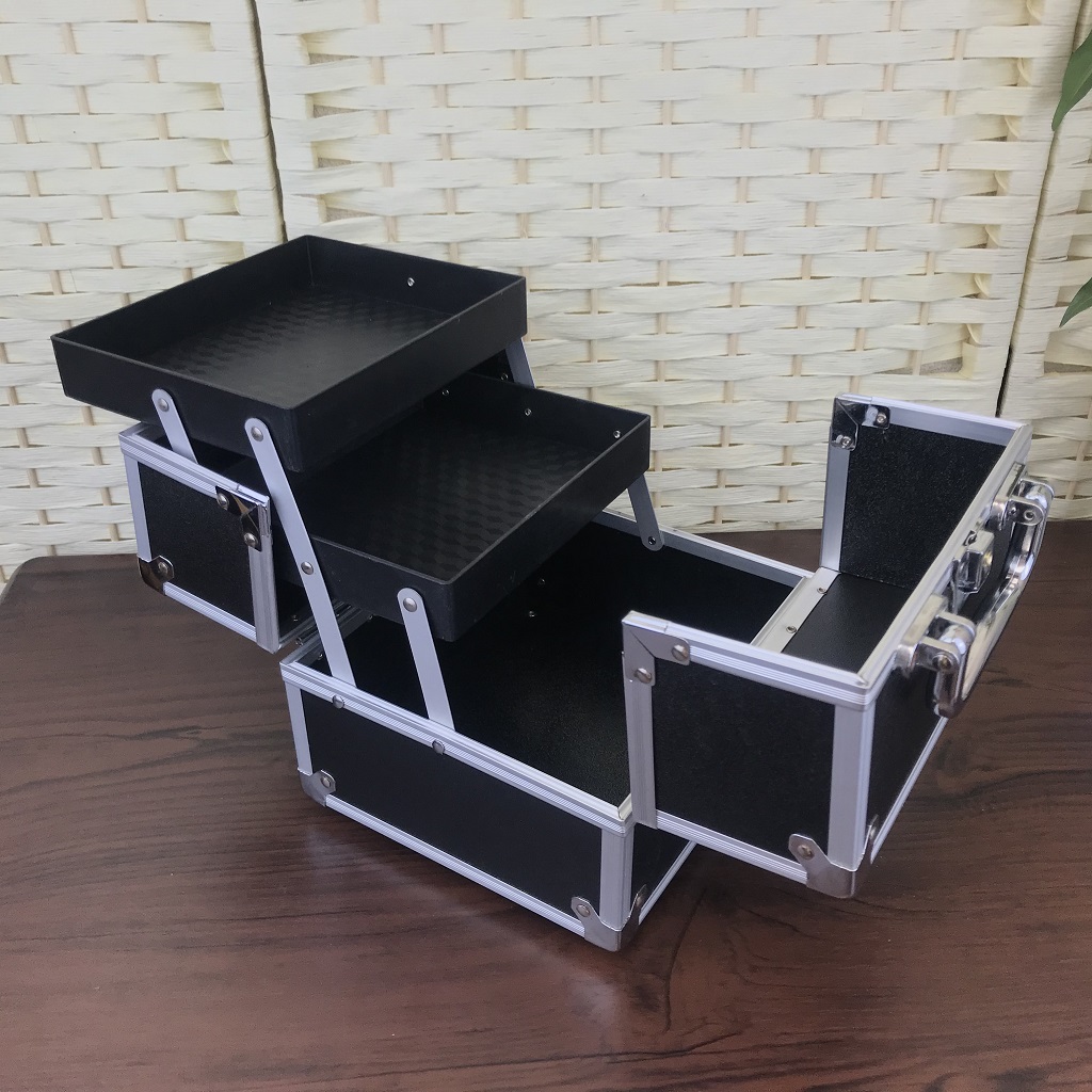 コスメケース 黒 2段トレイ