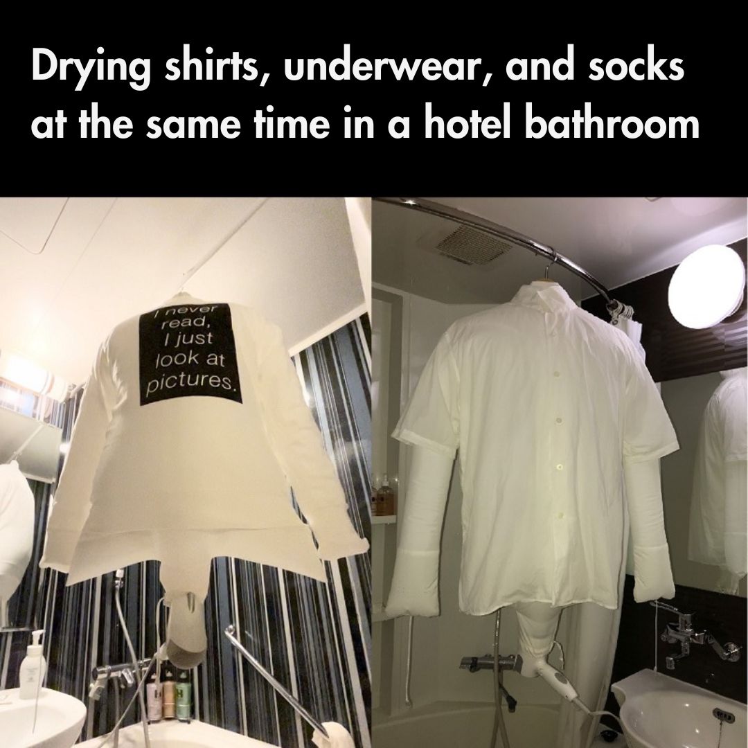 Dry your shirts, socks, and underwear all together in as little as 10 minutes with the portable clothes drying balloon "Kotsukan Aeroduct THE Long"